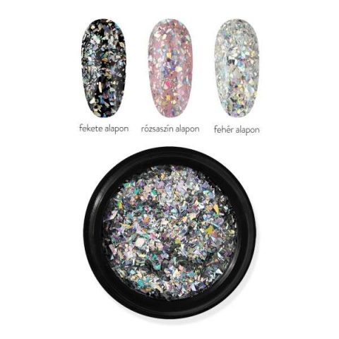 Keverhető fényzselébe, zselébe és porcelánba egyaránt. Beépíthető műkörömbe, körömlakk és lakkzselé ragacsos felületére is tökéletesen rátapad és magasfényű ragyogást biztosít. Alkalmazása egyszerű, a végeredmény tökéletes. Gyönyörű négy különböző színben csillámló, pehely állagú díszítő por. Keverhető fényzselébe, zselébe és porcelánba egyaránt. Beépíthető műkörömbe, körömlakk és lakkzselé ragacsos felületére is tökéletesen r