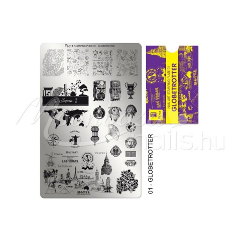 MOYRA - NYOMDALEMEZ - Globetrotter - 01 Megérkezett Moyra nyomdalemezek első sorozata. Megérkezett Moyra nyomdalemezek első sorozata. Ezen professzionális minőségű, nagyméretű nyomdalemezek segítségével percek alatt különleges körmöket készíthetsz akár