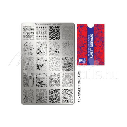 MOYRA - NYOMDALEMEZ - Sweet Dreams - 13 Megérkezett Moyra nyomdalemezek első sorozata. Megérkezett Moyra nyomdalemezek első sorozata. Ezen professzionális minőségű, nagyméretű nyomdalemezek segítségével percek alatt különleges körmöket készíthetsz akár