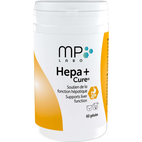 MP Labo Hepa+ Cure májműködést támogató kapszula kutyák és macskák számára. A növényi összetevők (máriatövis, orvosi füstike), foszfatidil-kolin, cink-metionin, antioxidánsok, sörélesztő, ásványi anyagok és vitaminok komplex kombinációja révén májvédő hatású és hozzájárul a megfelelő máj- és epeműködés fenntartásához.Táplálékkiegészítő kisokos kutyáknak és macskáknak: