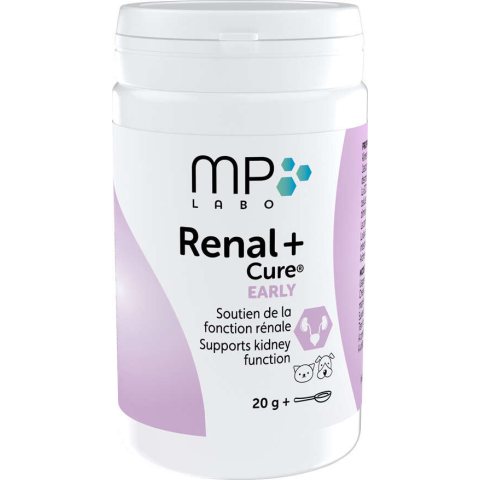 MP Labo Renal+ Cure Early veseműködést támogató por állagó étrendkiegészítő a veseelégtelenség korai fázisában kutyák és macskák részére. Adagolása a vesebetegség első és második stádiumában, illetve idős állatok esetén ajánlott.Táplálékkiegészítő kisokos kutyáknak és macskáknak: