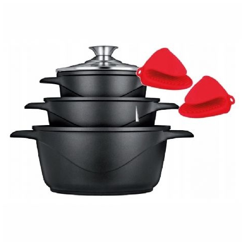 Edényszett, 6 db-os, alumínium, ILAG tapadásmentes bevonat, fekete, MGK-18