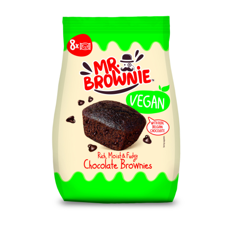 Mr. brownie vegán brownie 200 g Belga csokoládé darabok hozzáadásával készülő brownie. VEGÁN speciális étrendnek megfelel, nem tartalmaz állati eredetű összetevőket. A zacskó 8 db 25g-os, egyesével csomagolt brownie darabot tartalmaz. Felmelegítve is m