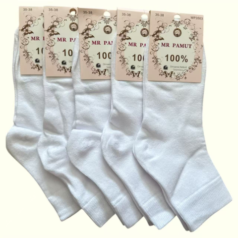 1 kép MR Pamut Női fehér Klasszikus zokni 5 pár 100% pamut