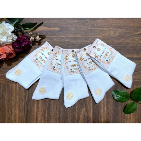 Fehér női normál szárú zokni A Mr Pamut fehér normál szárú zokni 100% pamutból készült, egyszerű,díszítés nélküli dizájnnal. Kényelmes és praktikus választás a mindennapi viselethez, ideális munkába vagy bármilyen alkalomra, amikor egy alap zokni a megfel