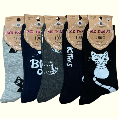 1 kép MR Pamut Női pamut zokni Vidám cicás - 5 pár