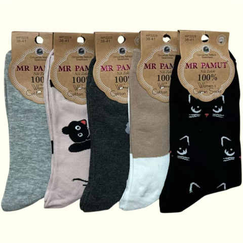 1 kép MR Pamut Vidám női pamut zokni – Cuki cicás dizájn, 5 pár