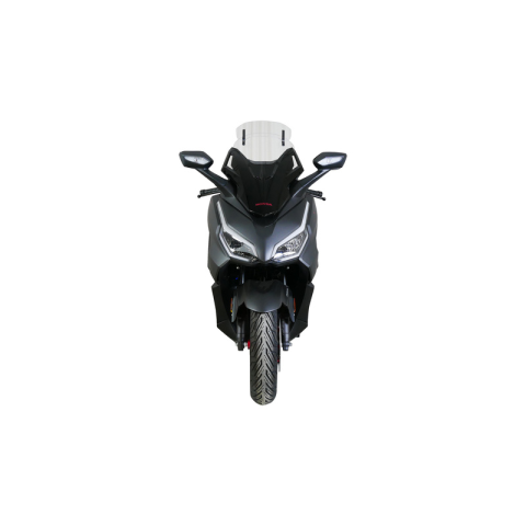 "NSS 125 / 350 FORZA - Variotouringszélvédő "VTM" 2021-"Ez a túra szélvédő egy végén elhelyezett spoilert tartalmaz, amely hét fokozatban, manuálisan állítható a kívánt pozícióba. A spoiler mögötti légáram csökkenti a vezetőre nehezedő szélnyomást, miközben mérsékli a turbulenciát is. A Vario-Touring szélvédő átlátszó és füstszürke kivitelben is elérhető.