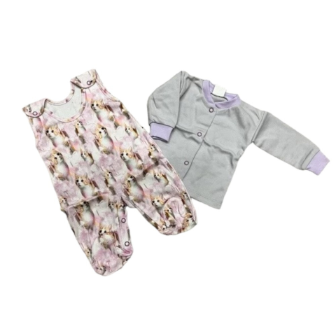 MROFI 2 részes szett - Szürke/Rózsaszín Cicás 62 babaruha szett 1 kép
