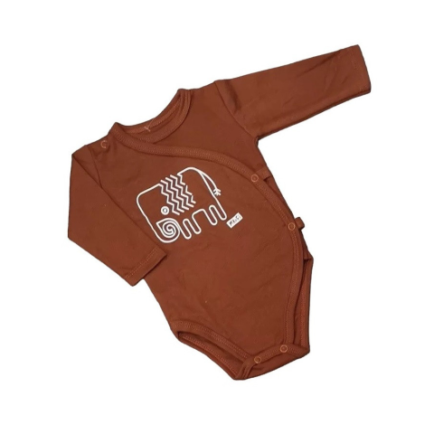 1 kép MROFI Réklis Hosszú ujjú body - Rozsdabarna / Elefánt mintás - 56