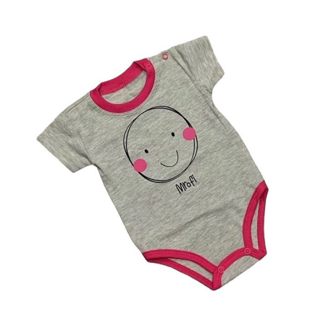 1 kép MROFI Rövid Ujjú Pamut Body - Szürke/Pink Smile - 68