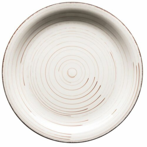 Tálalja kedvenc ételeit egy lapos, fényes csíkokkal díszített tányérban. Finom színének és érdekes kialakításának köszönhetően az asztal szép dísze lesz.