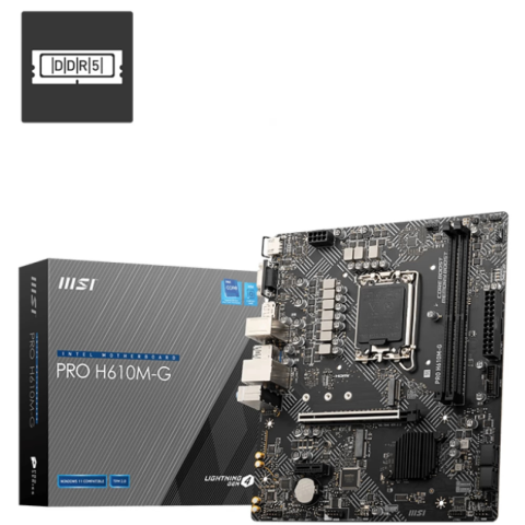 MSI PRO H610M-G típusú alaplap LGA-1700 foglalattal, Intel H610 chipsettel, Processzorban integrált videokártyával, 2 darab DDR5 memóriafoglalattal (max 96GB). 6 darab USB 2.0 port, 4 darab USB 3.0...