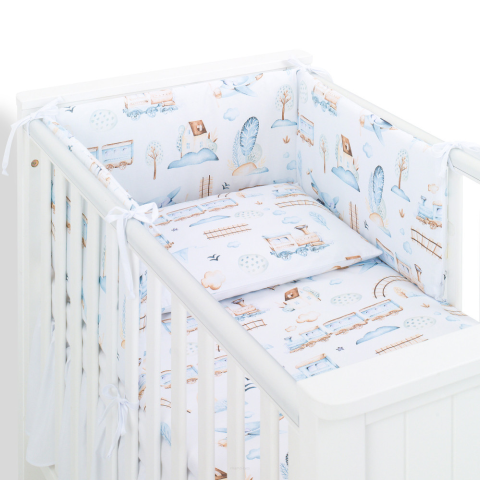MTT 3 részes ágyneműhuzat szett: Párnahuzat mérete: 40x60 cm ( +/- 3 cm) Paplanhuzat mérete: 100x135 cm ( +/- 3 cm) Rácsvédő mérete: 30x180 cm ( +/- 3 cm) A rácsvédő 8 hosszú, szépen varrott pánttal rendelkezik, melynek köszönhetően fixálható a kiságy rá