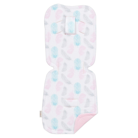 1 kép MT T Babakocsi betét - Fehér alapon rózsaszín-kék tollak - Rózsaszín háttal