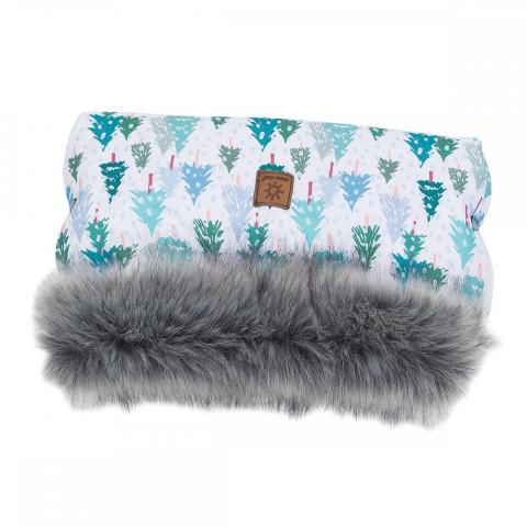 1 kép MT T Kézmelegítő babakocsihoz - Fehér alapon havas fenyőfák
