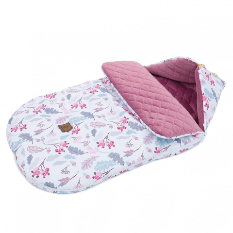 1 kép MT T Őszi bundazsák (0-12 hónapos) - Fehér alapon rózsaszín tölgyfa levelek