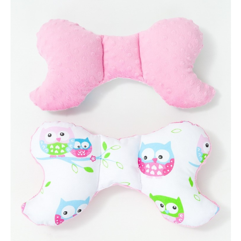 1 kép MT T Pillangó párna - Fehér alapon színes baglyok - rózsaszín Minky háttal