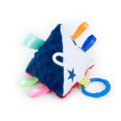 Szenzoros piramis Mindkét oldal más, mind színében, mind anyagának felépítésében. Színes címkék vannak varrva az oldalakhoz, amelyek biztosan érdekelni fogják a kicsit. Csörgés hang van belül. A kockák az érzékek stimulálásával serkentik a baba fejlődés