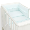 MTT Wavy 3 részes ágyneműhuzat szett:Párnahuzat mérete: 40x60 cm (+/- 3cm)Paplanhuzat mérete: 100x135 cm (+/- 3cm)Rácsvédő mérete: 30x180 cm (+/- 3cm)A rácsvédő 8 db hosszú, szépen varrott pánttal rendelkezik, melynek köszönhetően fixálható a kiságy rácsa