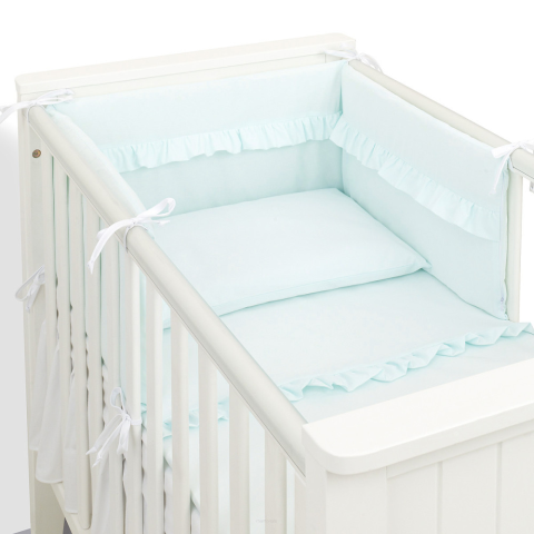 MTT Wavy 3 részes ágyneműhuzat szett:Párnahuzat mérete: 40x60 cm (+/- 3cm)Paplanhuzat mérete: 100x135 cm (+/- 3cm)Rácsvédő mérete: 30x180 cm (+/- 3cm)A rácsvédő 8 db hosszú, szépen varrott pánttal rendelkezik, melynek köszönhetően fixálható a kiságy rácsa