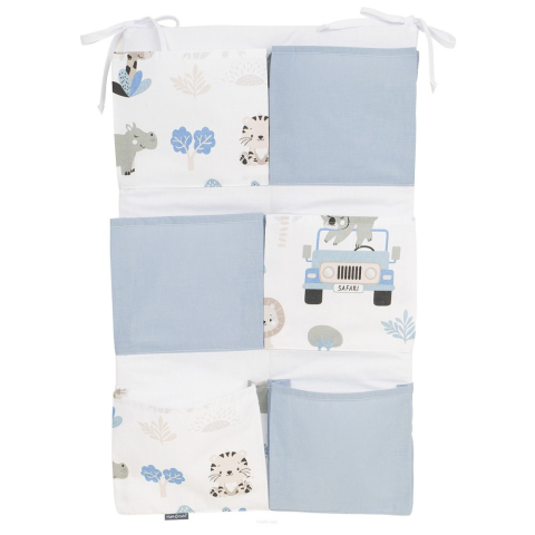 1 kép MT T Zsebes tároló kiságyra - Szafari állatai kék járművel
