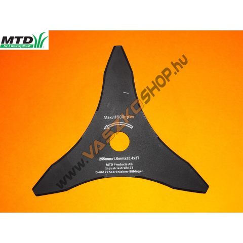 MTD fűkasza bozótvágó kés Gyári cikkszám: 092.63.024 Mérete: 255x25,4 GYÁRI MTD ALKATRÉSZ