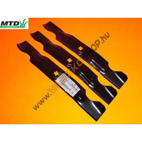 MTD MF 50-23 ZT , RZT 50 , CC 1224KHP , LTX 1050 fűnyíró traktorkés 127 cm-es vágásszélességhez Gyári cikkszám: 742-04053C, 942-04053C A készlet tartalma 3 db 45cm-es kidobós kés Cikkszám: 742-04053C , 942-04053C Kés hossza: 454 mm Középső lyu