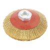 A MATRIX fazékkorongok cserélhetõ fogyóeszközök sarokcsiszolókhoz.A kefe lágyított kreppelt acélhuzalból készül, sárgaréz bevonattal.A fémfelületek rozsdától és szennyezõdésektõl alacsonyabb fordulatú üzemmódban történõ tisztítására szolgál.A kreppelt réz