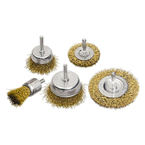 Hullámkreppelt tengelyre szerelt kefe készlet, kefekorong 50-75 mm + kehely 75mm, 5 db// MTX 4044996071947 A MATRIX 744929 kefe készletet fúróval történġ használatra tervezték. Csiszolásra, polírozásra, lakkotól, festéktġl való tisztításra és különféle
