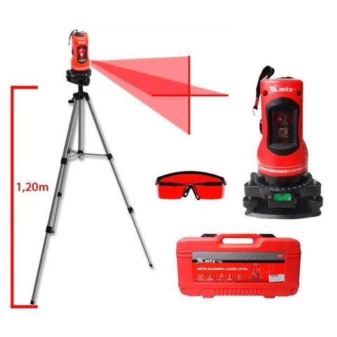 Az önbeállós lézeres vízszintezõ: vízszintesen, függõlegesen vagy egyszerre kettõt kereszt formájában vetít síkokra. Az eszköz megkönnyíti a javítási, építési, szerelési munkák elvégzését, a helyiségek kartonozása, burkolása, festése és berendezése során