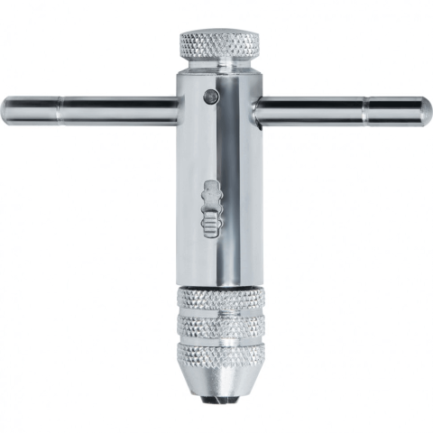 Krómozott menetfúró Matrix 769079 racsnis, kétirányú mechanizmussal. M5-M12, racsnis, belsõ menetek kézi menetfúrásához furatokban és hengeres alkatrészekben. Alkalmas M5, M6, M8, M10 és M12 menetes menetfúrókhoz. Menetes csatlakozások javítására haszná