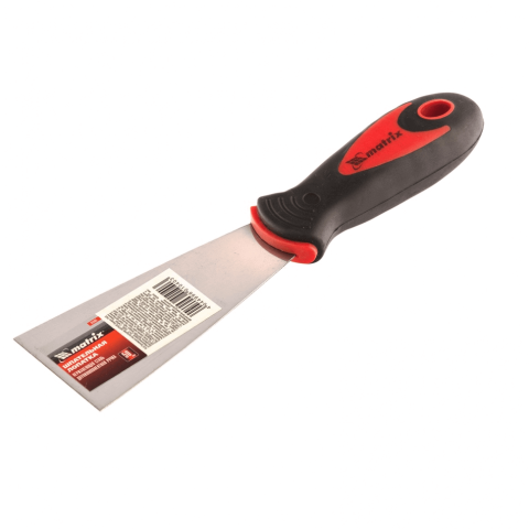 A spatula profilos rozsdamentes acél pengével rendelkezik. A kétkomponensû mûanyagból és gumiból készült fogantyú megvastagított a tenyér környékén. A gittréteg felületre felhordására, kiegyenlítésére és simítására szolgál vakolat, gelttelés, restaurálá