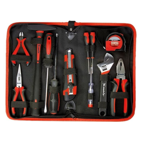 12 db-os szerszámos szett: minden egy praktikus húzózáras gyöngyvászon táskában otthonra. A készlet tartalmaz hosszú orrú- oldalcsípõ- egyetemes (kombinált)fogót, teszter (fázis) csavarhúzót, 200 g-os kalapácsot, SL 6 x150 mm, PH 2 x 150 mm csavarhúzókat,