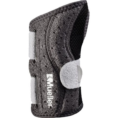 Ortézis csuklóra - bal oldali, hüvelykujjbújtató, anyaga poliészter és nejlon, uni méret A Mueller Adjust-to-fit wrist brace left egy csuklórögzítő, amely a belső merevítésnek köszönhetően maximális támogatást és stabilizálást nyújt. Megfelelő megoldás ínhüvelygyull