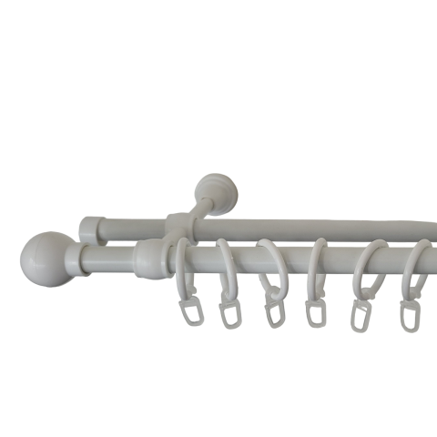 Fém karnis szett 240cm - kétsoros - átmérő: 16mm - a szett tartalma: fém rúd műanyag kiegészítő gömb végzáró - fehér
