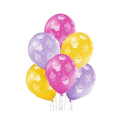 Cupcakes, Muffin léggömb, lufi 6 db-os 12 inch (30cm) Anyaga: latex/gumi Mérete: 30 cm (12 inch) A lufi tartó pálca + csésze külön megvásárolható áruházunkban (KFJ_DPA9917359 vagy KFJ_DPA9918300).