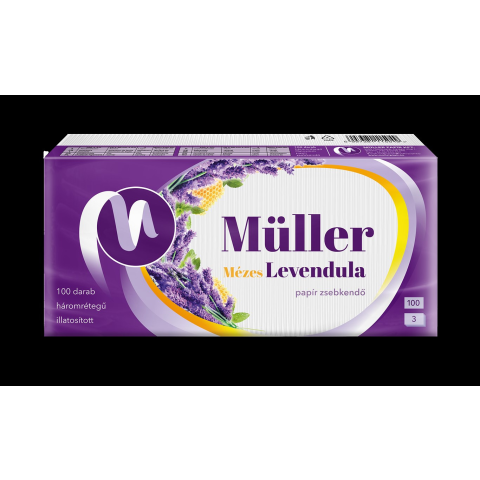 Müller Müller papírzsebkendő 100 db Mézes Levendula 3 rétegű higiéniai papíráru 1 kép