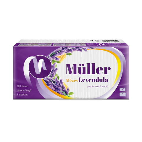 1 kép Müller Papírzsebkendő 3 rétegű 100 db/csomag mézes levendula