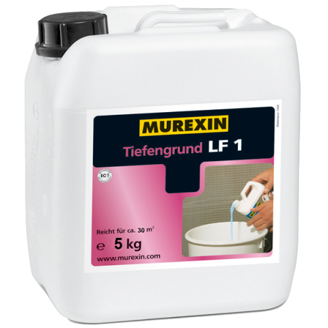 Murexin LF 1 mélyalapozó - 5 kg - kék - vizes bázisú műgyanta-diszperzió - nedvességzáró és nedvszívás-kiegyenlítő, de nem párazáró bevonat - nedvszívó alapfelületek (mészcement- és cementvakolatok, beton, égetett agyag stb.) előkezelésére - cement, cementdiszperzió, diszperziós kiegyenlítő masszák, csemperagasztók, kenhető vízszigetelések felhordása előtti alapozásra - pormegkötésre - tapadás javítására - felhasználásra kész - anyagszük