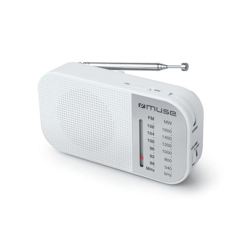 Rádió, hordozható, MUSE, M-025RW, fehér - FM/MW analóg tuner - teleszkópos FM antenna - fülhallgató bemenet Gyártó/első EU forgalmazó elérhetősége: NEW ONE S.A.S 10, Rue de la Mission, 25480 ECOLE-VALENTIN, France contact@muse-europe.com https