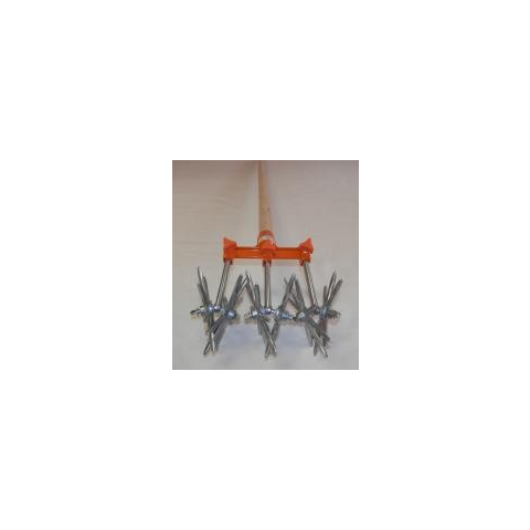 A Muta csillagkapa anyaga alumínium, a fogak hossza 43 mm, 130 cm-es fanyéllel.