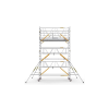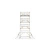 (A) Szállítási hossz (mm): 2403(B) Szélesség (mm): 528(C) Legfelső fok magassága (mm): 1640(D) Mélység (mm): 1385(E) Combtámasz magassága (mm): 2279(V) Munkamagasság (mm): 3640Súly (kg): 6,7Teherbírás (kg): 120