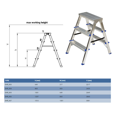MUTA Két oldalt járható alu létra 2x3 létra és állvány árgrafikon