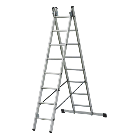 Kéttagú létra, használható dupla (''A'' alakú) és kihúzható létraként is. A biztonsági acél rudak megakadályozzák a létra véletlen kinyilását.