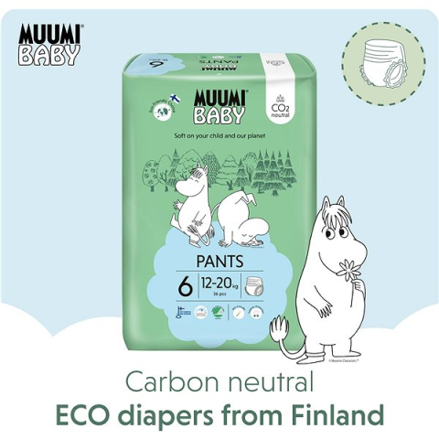 Bugyipelenka - környezetbarát, eldobható, mérete 6, 12-20 kg súlyú gyermekek számára, hipoallergén, pelenkakiütés elleni védelem, parfümmentes, klórmentes, anyaga cellulóz, felhúzható, állatkás motívum, 108 db a csomagban Érdekli az ökológia? Szeretné megvásárolni a baba pelenka bugyiját, amely nem terheli a természetet, miközben érzékeny és gyengéd a bőrére? Ha igen, az ideális megoldás a Muumi Baby eldobható