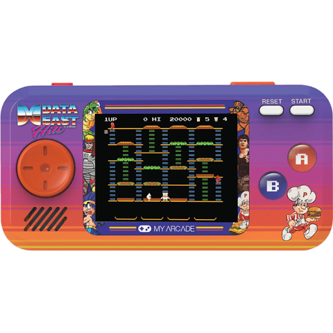 8 hivatalosan engedélyezett Data East™ játék + 300 retro stílusú bónuszjáték. 2,75 hüvelykes színes háttérvilágítású képernyő. 4 db AAA elemmel (nem tartozék) vagy Micro-USB kábellel működik (nem tartozék). Beépített előlapi hangszóró, hangerőszabályzó és 3,5 mm-es fejhallgató-port. A kompakt méret és a mellékelt hordpánt tökéletes útközbeni játékot tesz lehetővé. Olyan beépített Data East játékokkal, mint a BurgerTime™, Bad Dudes™, Caveman