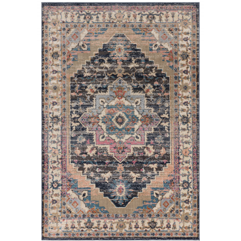 Zola klasszikus mintázatú szőnyeg 155 x 230cm méretben. A 78% Polypropilén 22% Polyester alapanyagból készült darab puha tapintású, mégis strapabíró, ideális választás a nappaliba vagy étkezőbe. 10mm vastagságával kellemes járófelületet biztosít. A szőnye
