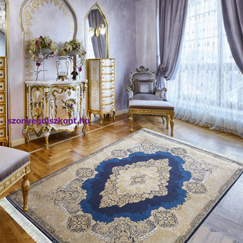 Díszítse otthonát a(z) Dy QUM klasszikus megjelenésű, kék színű szőnyeggel! A 5mm vastagságú, puha 100% selyem anyag kellemes tapintást biztosít. A 160 x 230cm méret ideális bármilyen méretarányos helyiségbe. Rendszeres porszívózással tisztán tartható, íg