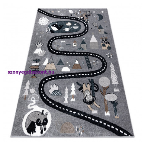 1 kép My carpet company kft Szőnyeg FUN Route gyerekeknek, utca, állatok szürke 160x220 cm